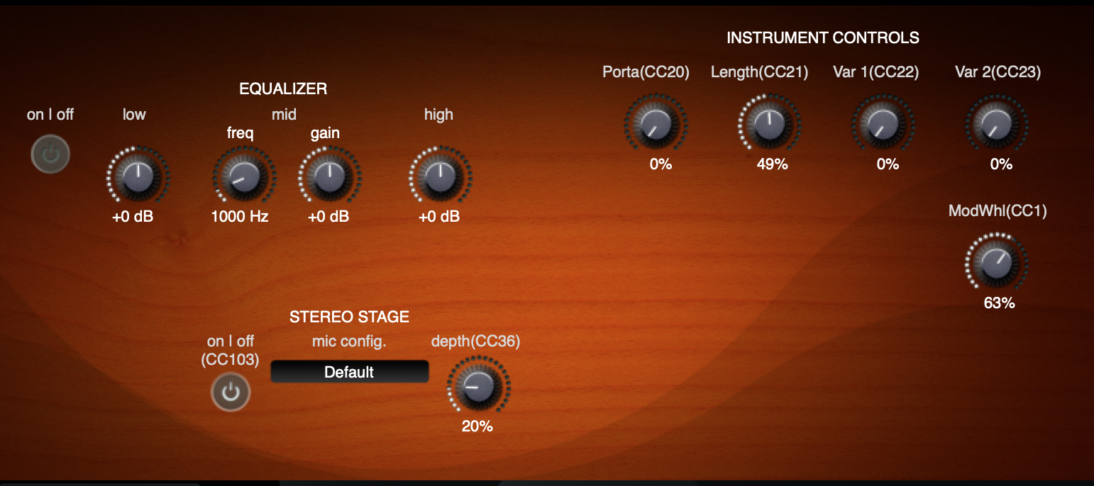 Garritan instruments depend on the use of many MIDI controllers — for instance, the modulation wheel (MIDI controller #1) — to shape the sound of each instrument. These controllers can be manipulated in the Controls tab of the ARIA Player in a DAW or through the use of Expressions in Finale. While there aren’t differences between available controllers for instruments between GIFF and GPO 5, the presentation of the Controls tab of the ARIA Player is different and allows for some additional equalizing opportunities in GPO 5.