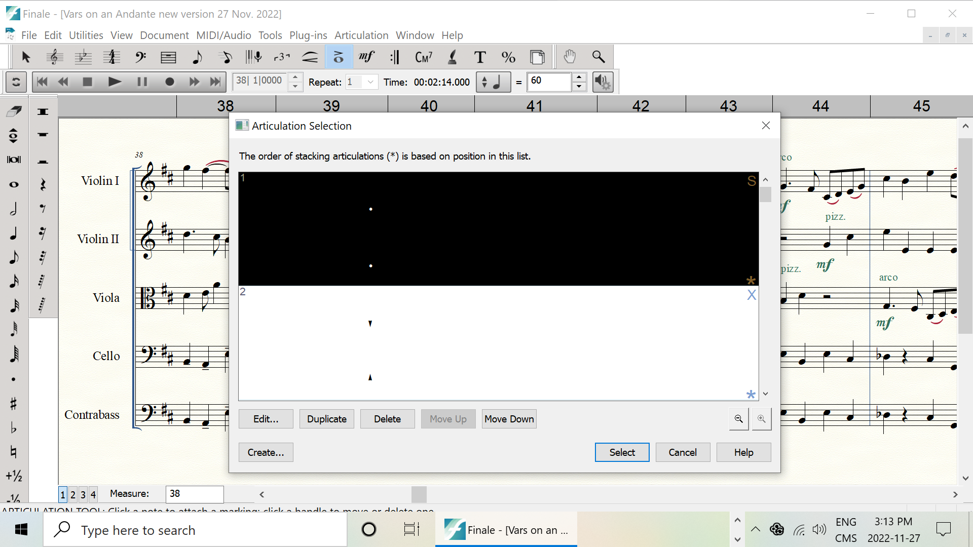 Windows 10, Finale Version 26.1.530. The selection list for Articulations is presenting like the attached screenshot. It refuses to restore defaults. How can I correct this?
