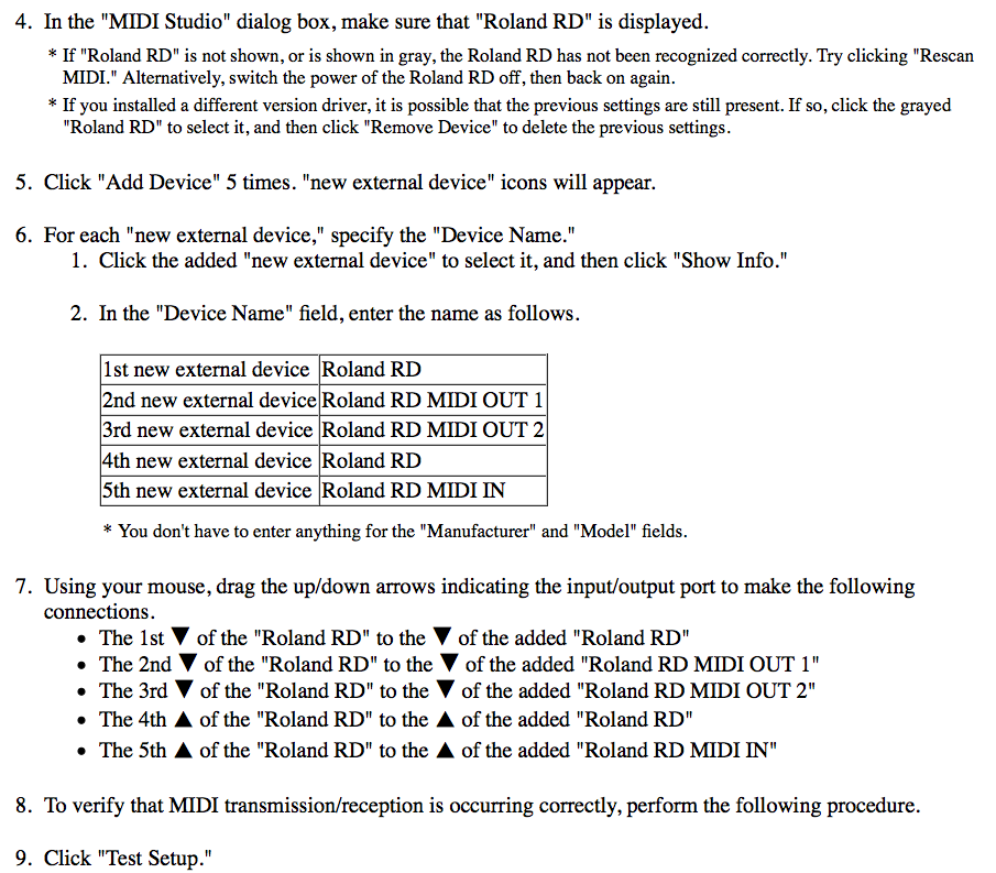 Just in case someone else is interested, here is what the driver installation instructions say about MIDI studio setup: