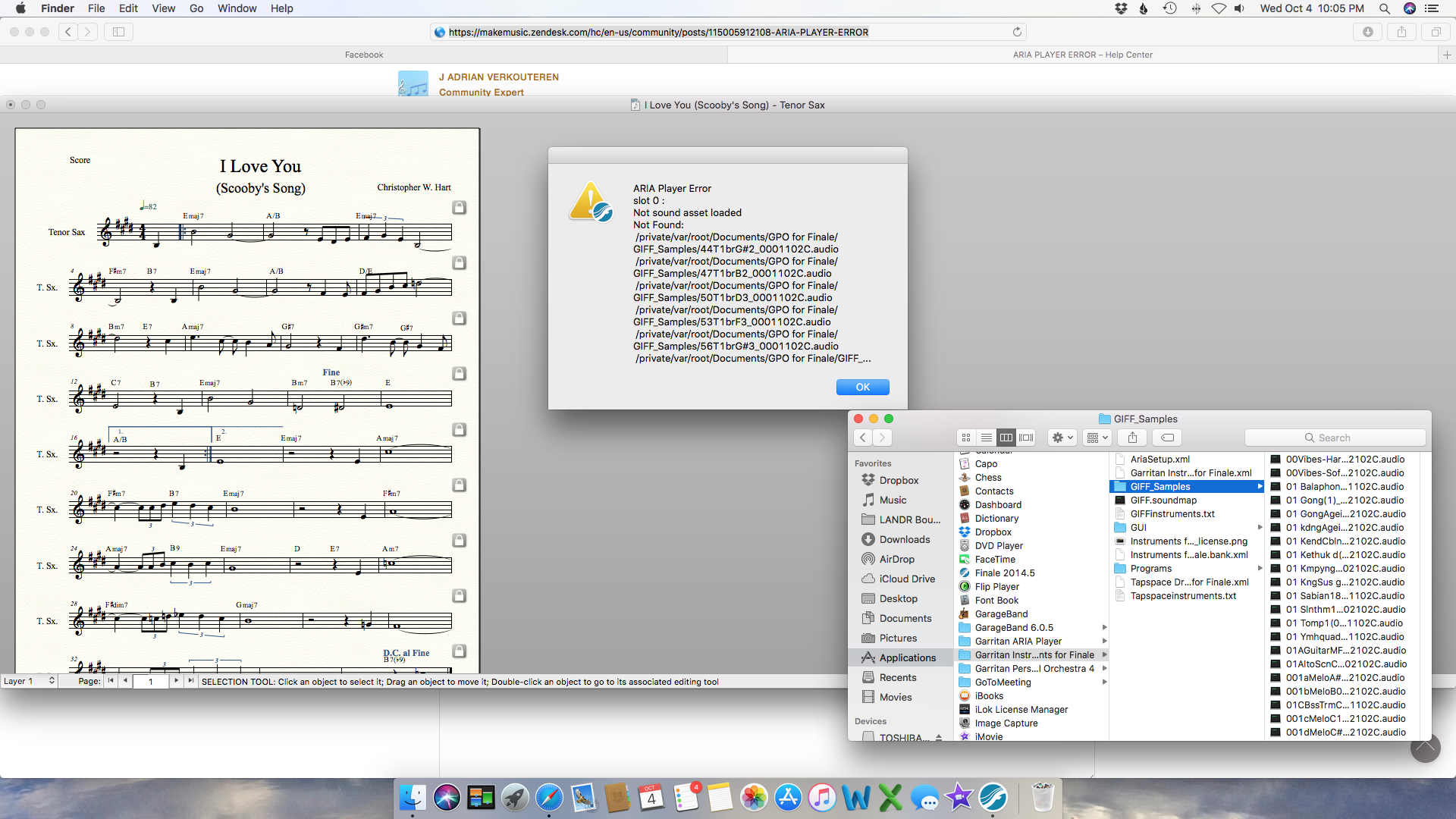 The Aria player does not appear to be able to find the sound files (which you've probably guessed already).