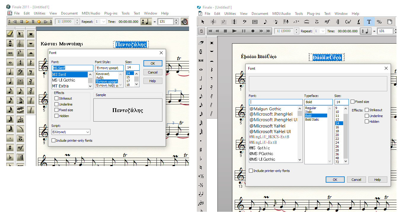 So I have opened up a file created in (probably) Finale 2009 or the like. It has changed many text occurences throughout the document into some sort of Chinese script.