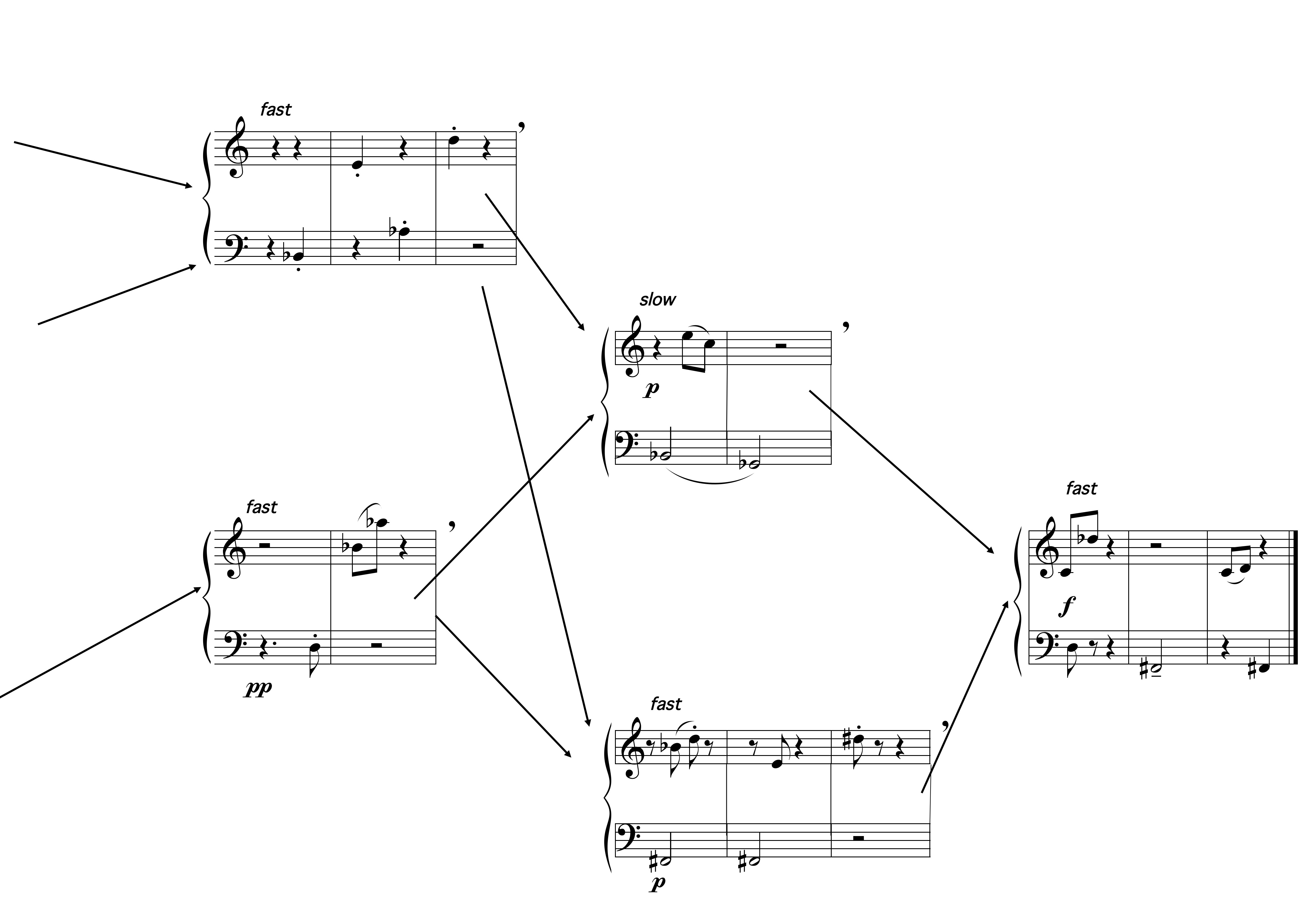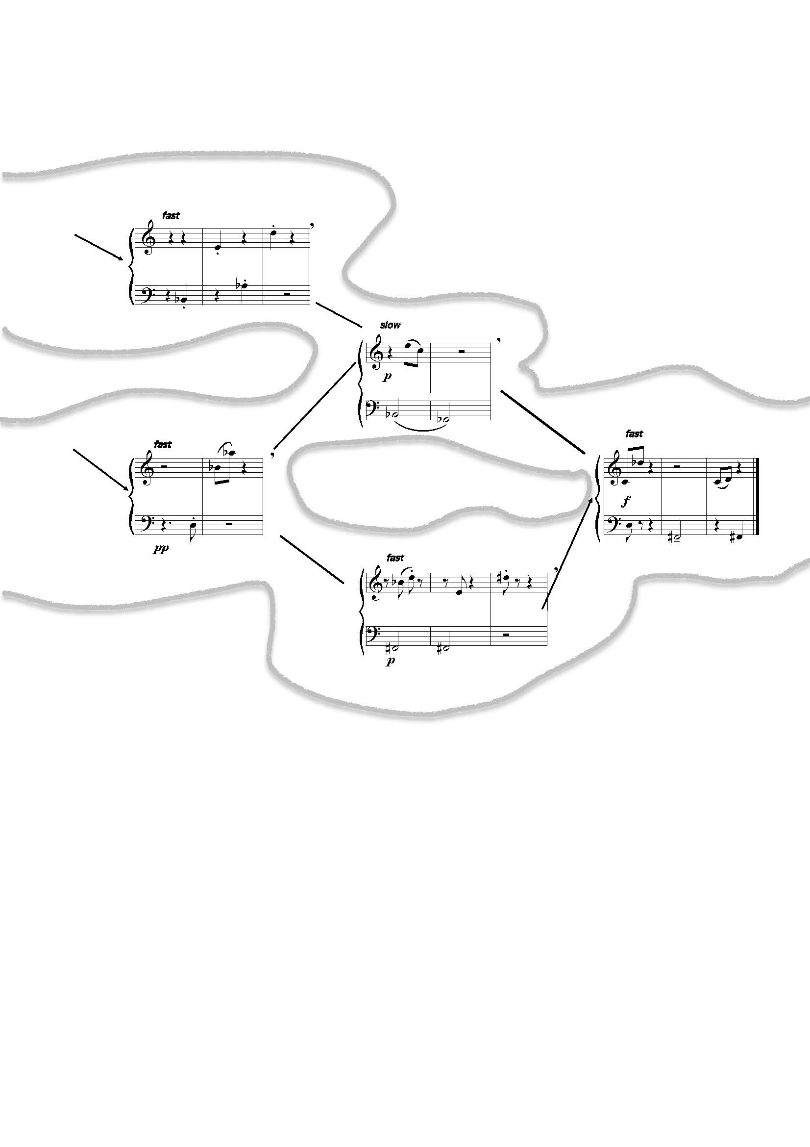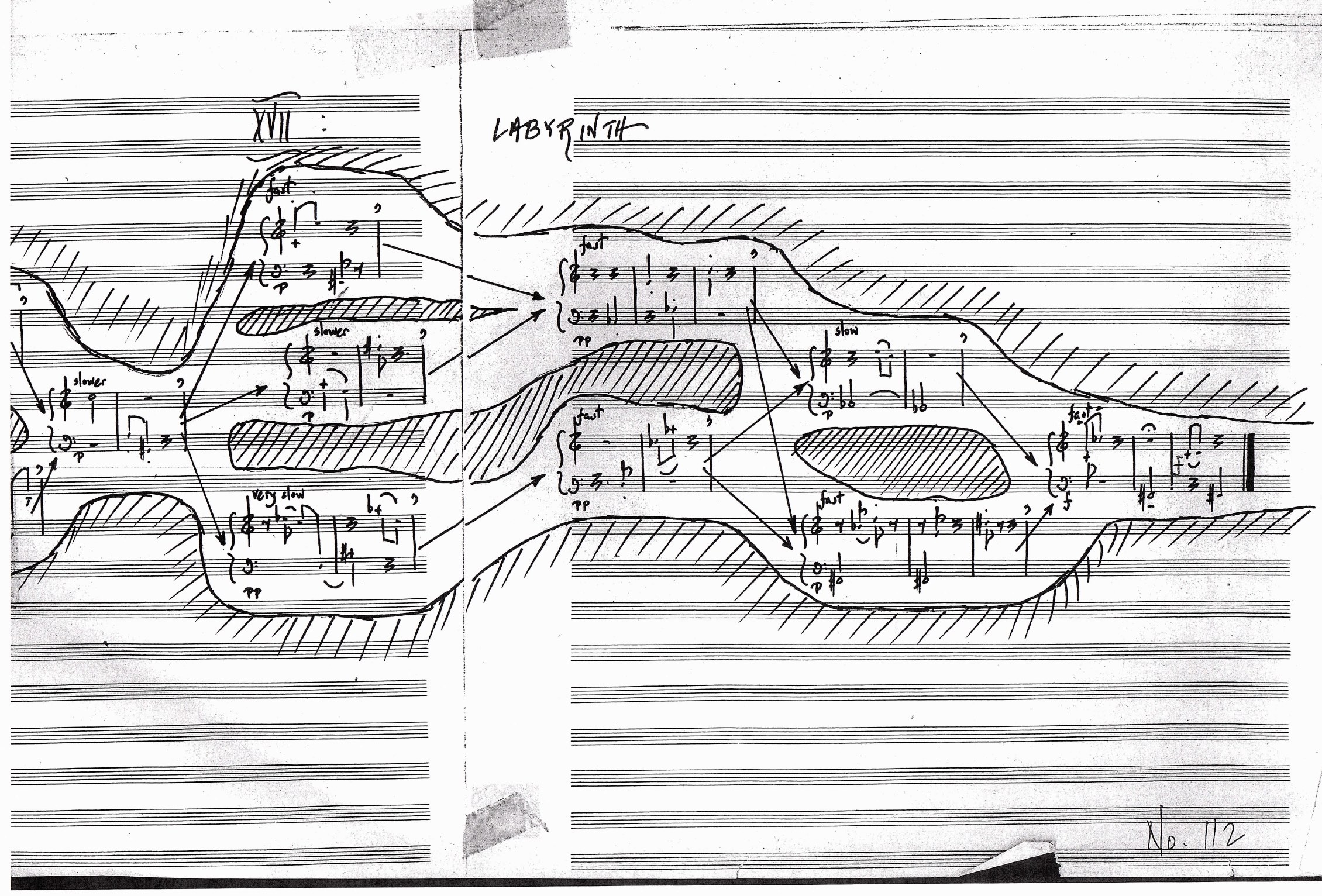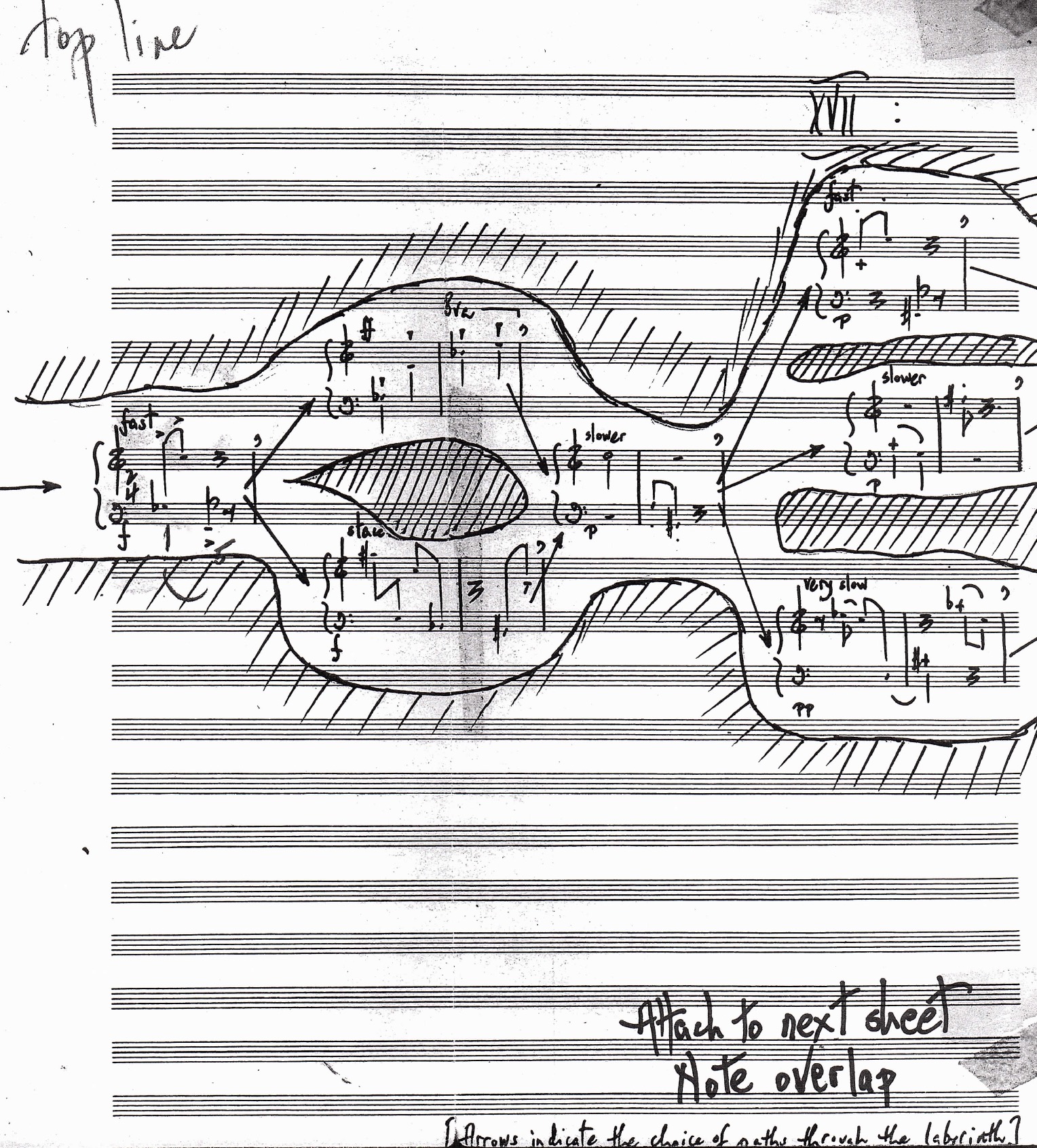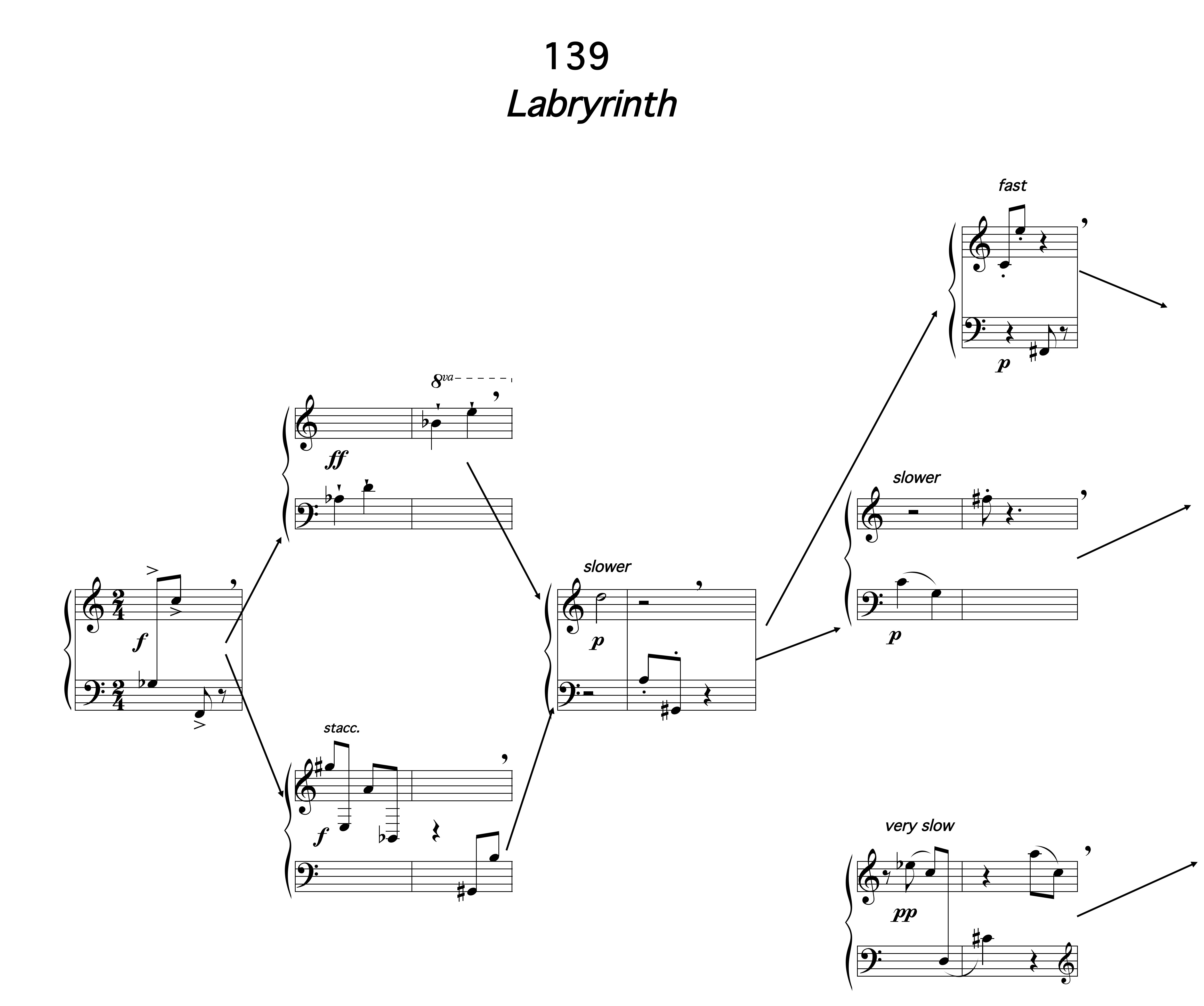 I've copied a manuscript that is quite complex graphically called "Labyrinth". The possible paths a performer can take are indicated in the music with connecting arrows.. I can print the piece from Finale and the arrows come out, but I need to be able to print it as a pdf (created when going to print, print as pdf). Once the pdf is created, either saved or in pdf preview, you find some arrows disappear! The drawing of the shape around it needs to be done in pdf preview (unless someone has a brilliant idea how you can create it!). I tried to attach the Finale file, but that option has been removed (!!!!), so all files are pictures of the result - sorry: