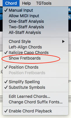 I need to add chord symbols to a jazz piece but I don't want the guitar fret board showing. How do I edit that out?