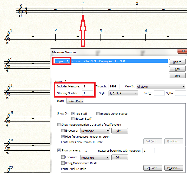 1) Document menu > Edit Measure Number Regions…