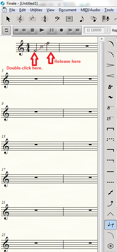 I want to add a slide between two notes. The help files says that there will be a small Arrow that I have to drag and drop between two notes. But when I select Smart Shapes > Tab Slide Tool the cursor changes into a cross with a point in it. When I move that cursor over the first note and I click and drag between two notes there is only a line created that is not linked to the notes.