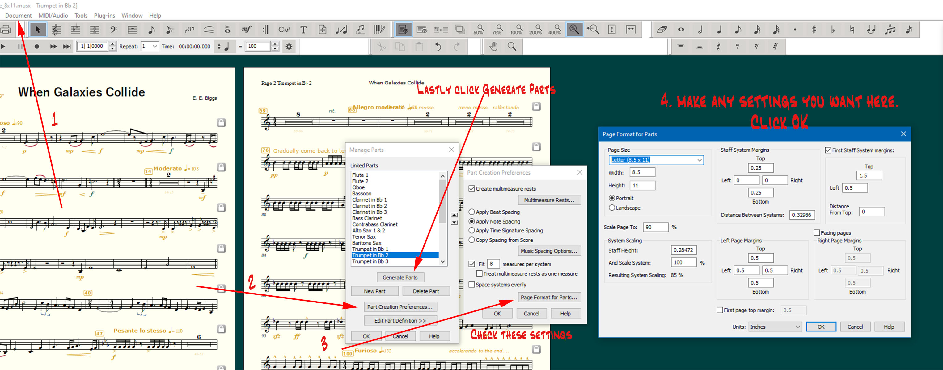 Now go back to the Document drop down>Edit Part>select any part (mine shows trumpet 2). You should see something similar to what mine is showing.