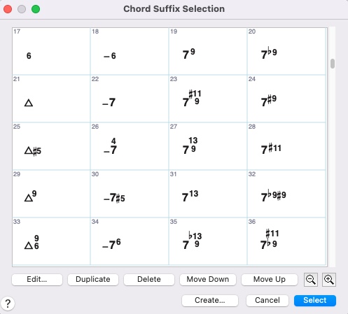 P.S. : On the Mac, Chord Kerner, a script for RGP Lua, can be a big help to create or modify suffixes.