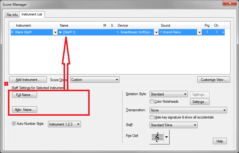I am currently using Finale v25 and I had a question about renaming the staves in the score. I am doing a concert band score and instead of the score reading F Horn 1 and F Horn 2, I would like both staves to read F Horn 1-2 and F Horn 3-4, respectively. I don't see a need to include 4 different staves for horn. Thanks!