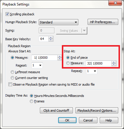 The other thing to check is the playback settings (that speaker icon in the diagram above--or whatever the Mac equivalent is if that is your OS. Make sure you have not inadvertently set the end of the playback to some point before the actual end of the music.