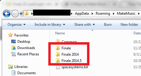 Templates for Finale (v25), Finale 2014, and Finale 2014.5 are located in separate Music Files folders each located inside the appropriate Finale folder.