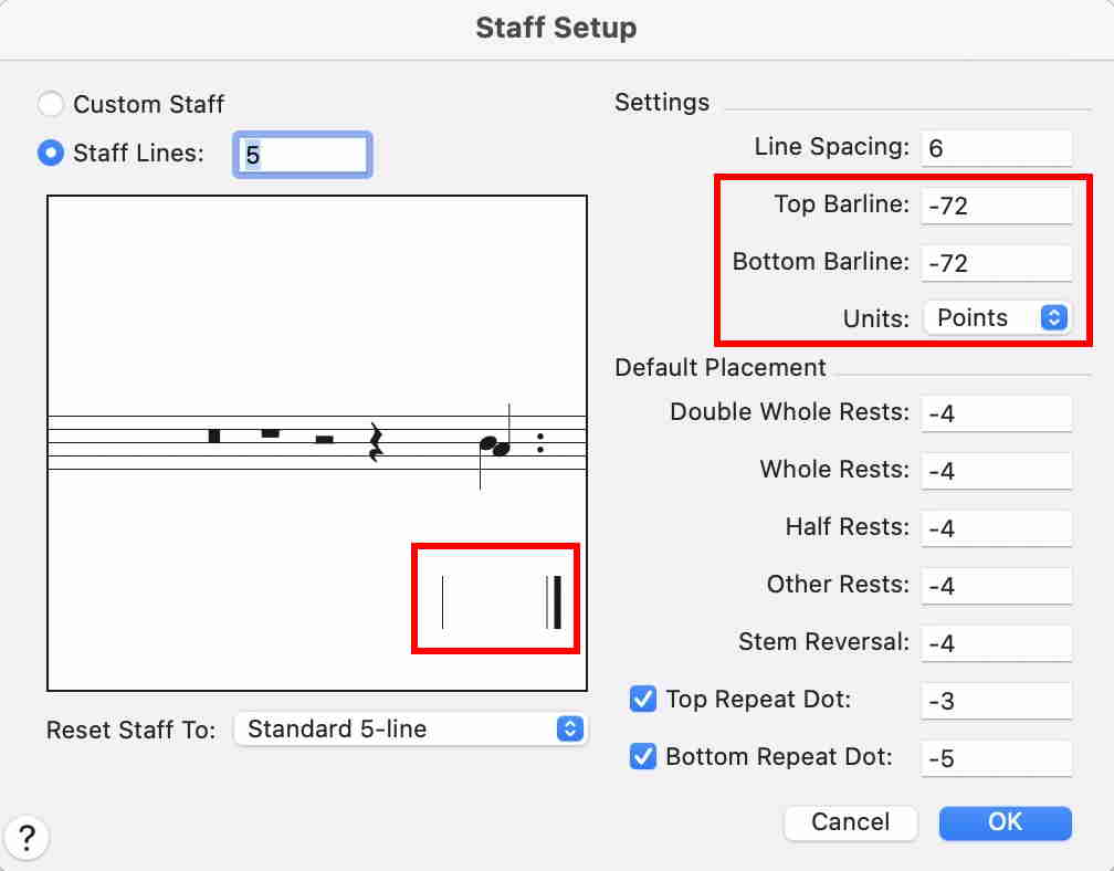 Looking for some help with drum parts for big band. I've set up a 'dummy' stave above my drum stave to put rhythmic hits in that has 0 staff lines. When I create the part, there is a vertical line at the start of each system that connects the bottom stave to where the dummy stave is. Is there an option to get Finale not to draw this? In the score it isn't an issue as there are other staves above. See picture below: