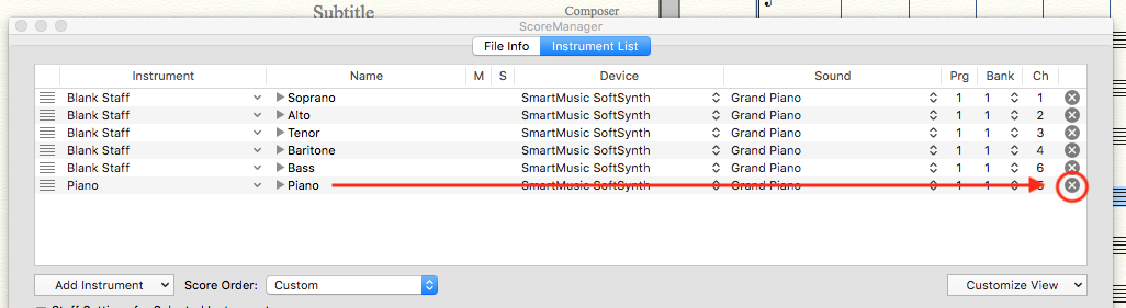 Or, you could go to the Score Manager, and tap the X at the right end of the undesired instruments.