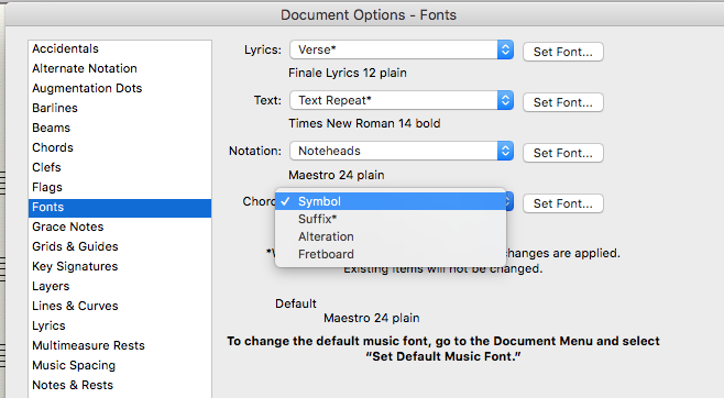 I currently have Finale 2012. When I increase the chord size (in Document - Options), the letters in a chord symbol get squished together. The kerning or horizontal spacing is not increased as the font size is increased. Does anyone know if this has been fixed in newer versions of Finale?