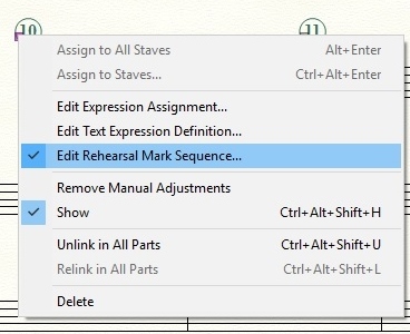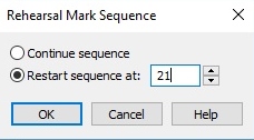 I've been using the Expression Tool to assign Rehearsal Marks (1,2,3,4)  to the beginning of each section of a large choral (Russian Orthodox) score.  All is great in the first file.  But Finale get's a little whacky when the Lyric Editor gets too full, so after about 30 pages I've begun a new file to continue.  But now the Rehearsal Marks go back to 1.  Is there some way to reset the counter for these the way you can change an offset for page numbers?  Please let me know if there's a solution.  Thanks.