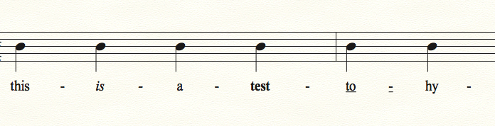 Then I underline "Sum," "li," and "ea" by hi-lighting each and going to the Text Menu and selecting Style > Underline. Each syllable gets underlined, but also the hyphen to the right of each.