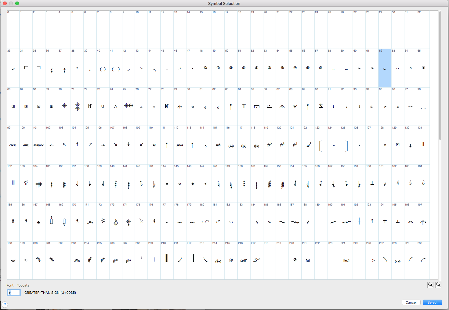 I realize now the slot numbers I mentioned in my orig. post came from the slots of the font "zapf dingbats" after I tried to replace toccata with it in my custom articulations- anyway, just a bit of confusion there... doesn't matter...