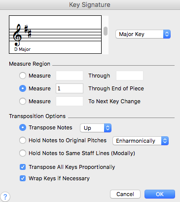 I am trying to transpose an entire document! I have composed a song cycle which is written for Sop/Ten. I am taking this file and transposing it for Alto/Bar I have saved the original document as (an example) "title" alto So now I have the copy of the original piece so I can transpose down (ex: a minor 3rd). How do I achieve this? The original document has key changes and when I transpose, the entire document is transposed to the new key, but the section where the key change has occurred, does not transpose in accordance. It remains in the new key. I have tried several means and not sure what I am doing wrong. Can anyone help me with this?
