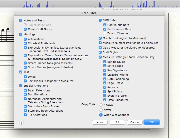 To make a Stack Selection of a measure, with all the staves in the document, double-click the measure.