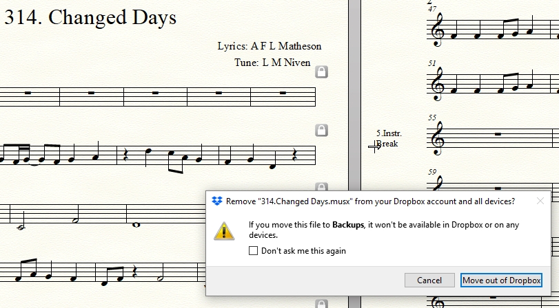 "If you move this file to Backups, it won't be available in Dropbox or on any devices."
