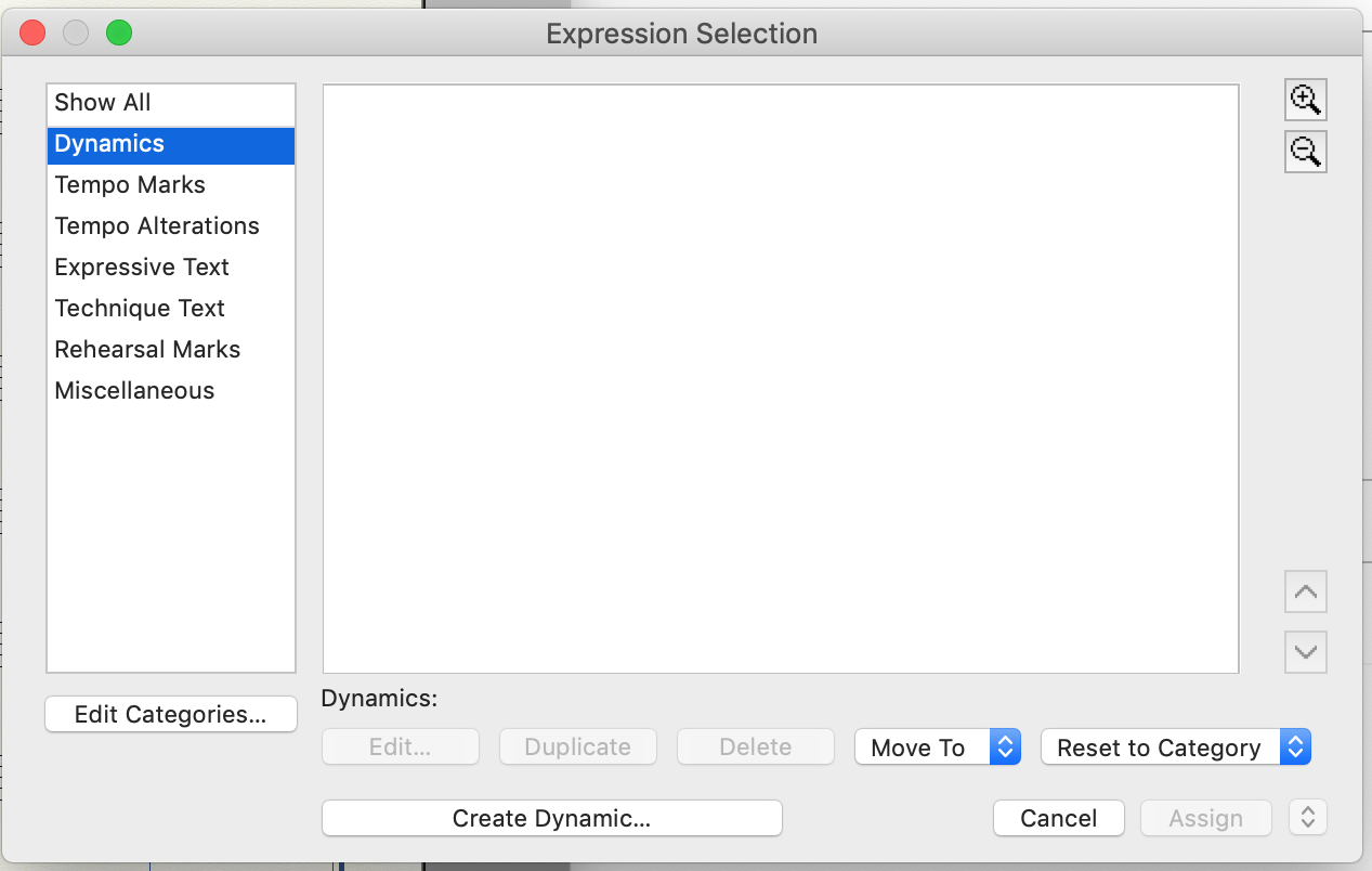 I open it, and there are no existing expressions, articulations, and chord symbols in any of the dialog boxes (pictures attached). There is no choice of selection. I can create new ones if I so choose, but the standards are not in there.