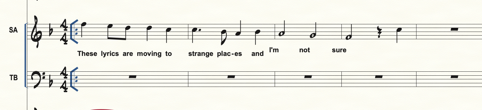 The one file is me typing in some lyrics and they are way too high....when I click my mouse it seems to redraw the screen and they magically go back into place. I can't be expected to hit Cmd-D every time I input a lyric for it to look right.