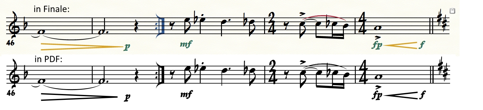 Does anyone know why hairpins sometimes do not print as they are shown on screen in Finale? For example, This is what they look like in Finale, and then what they look like on PDF. I tried using two different third-party PDF programs to print to, as well as Finale's export to PDF function. Also, when printing directly to my printer, I get the same results.