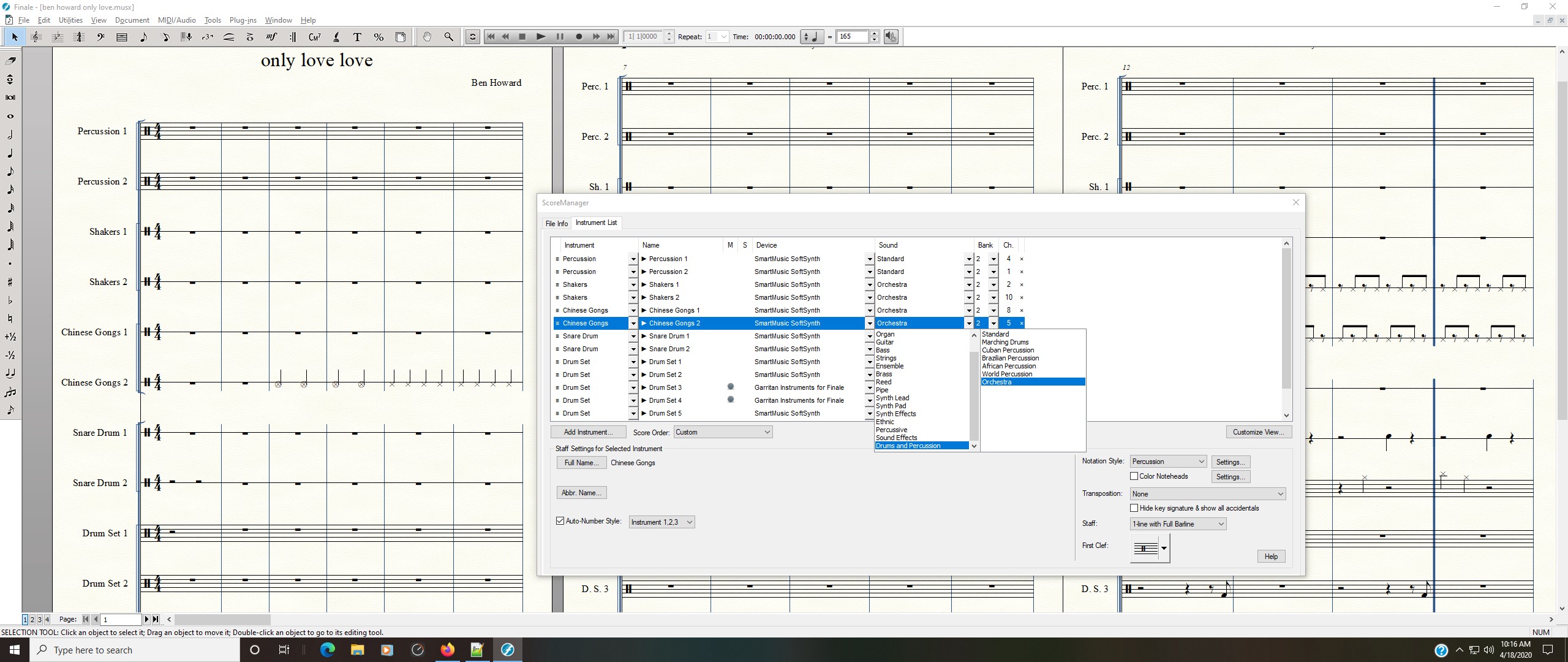 picture of what the file looks like when opened in Finale.
