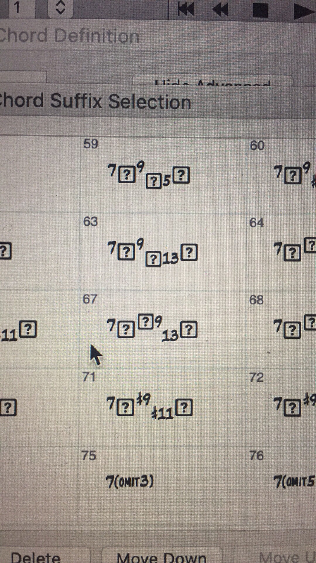 I'm trying to change my chord suffix font to broadway copyist text and I keep ending up with question marks inside of boxes instead of flat symbols. How do I fix this?