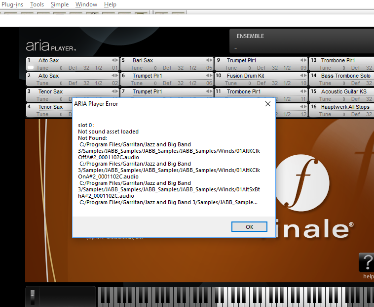 After a computer revert, I had to reload Finale, including Jabb, the ARIA player (reinstalling its version 1.8... engine), but the Jabb sounds aren't playing.