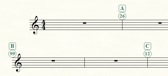 The issue I'm running into is that I would like to have two sets of rehearsal marks in my marching band score in parts. We use letters to delineate musical sections, but I would also like to be able to note each individual set change in the music.