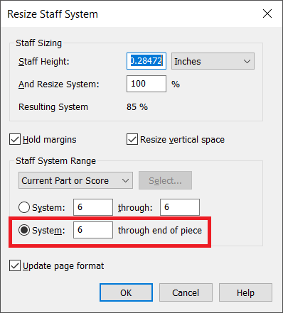 I have beewn composing music ona score. suddenly after page 38 everythingnseems bigger, the notes, the staffs etc and it does not fit anymore in one page. How to make the entire score have everything with same dimensions as the first part?
