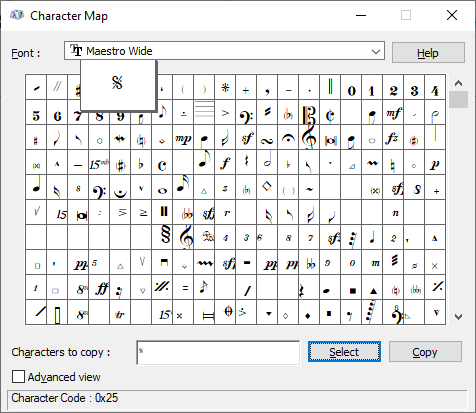 Thanks Peter but I'm not at a level of knowledge that I follow you. The font I'm using is Maestro. I have reviewed expressions that seem to be available and I don't see the Segno. So are you saying to change from Maestro to a font that has the Segno? And to do so how can I find a font that has Segno without going through all of the font types? I must be missing something.