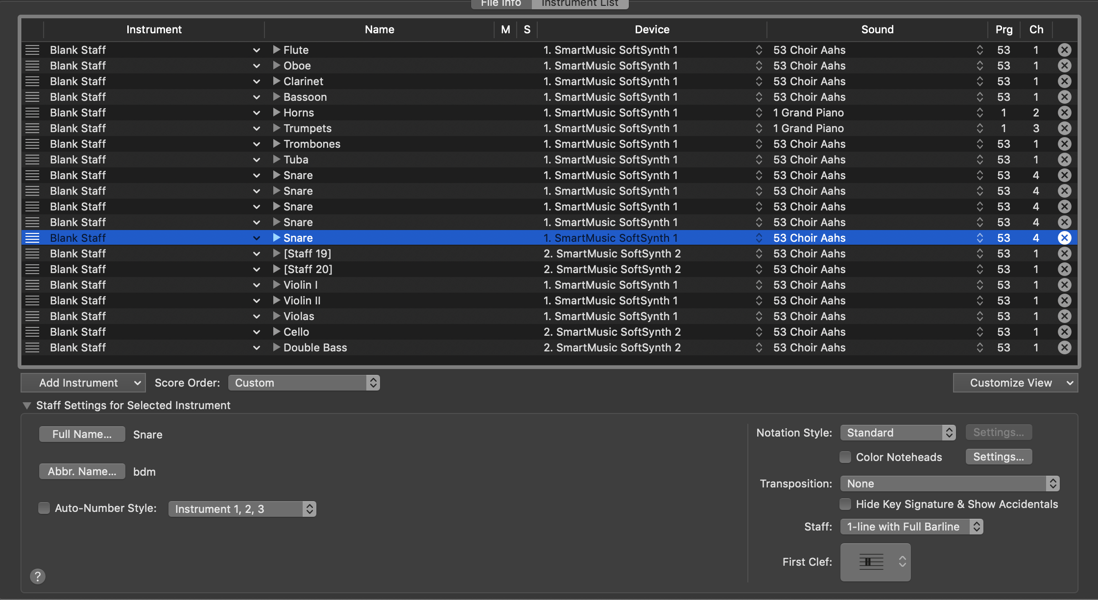 - The main issue I have is with my percussions. I have 5 tracks that for some reasons are all linked together; If I name one of the track "Bass Drum", all of the other track will change to "Bass Drum", if I change a setting to one of the staff, it will change it to all 5 staffs. I've tried many things to fix it, but at that point I am lost and don't know where could it be wrong.