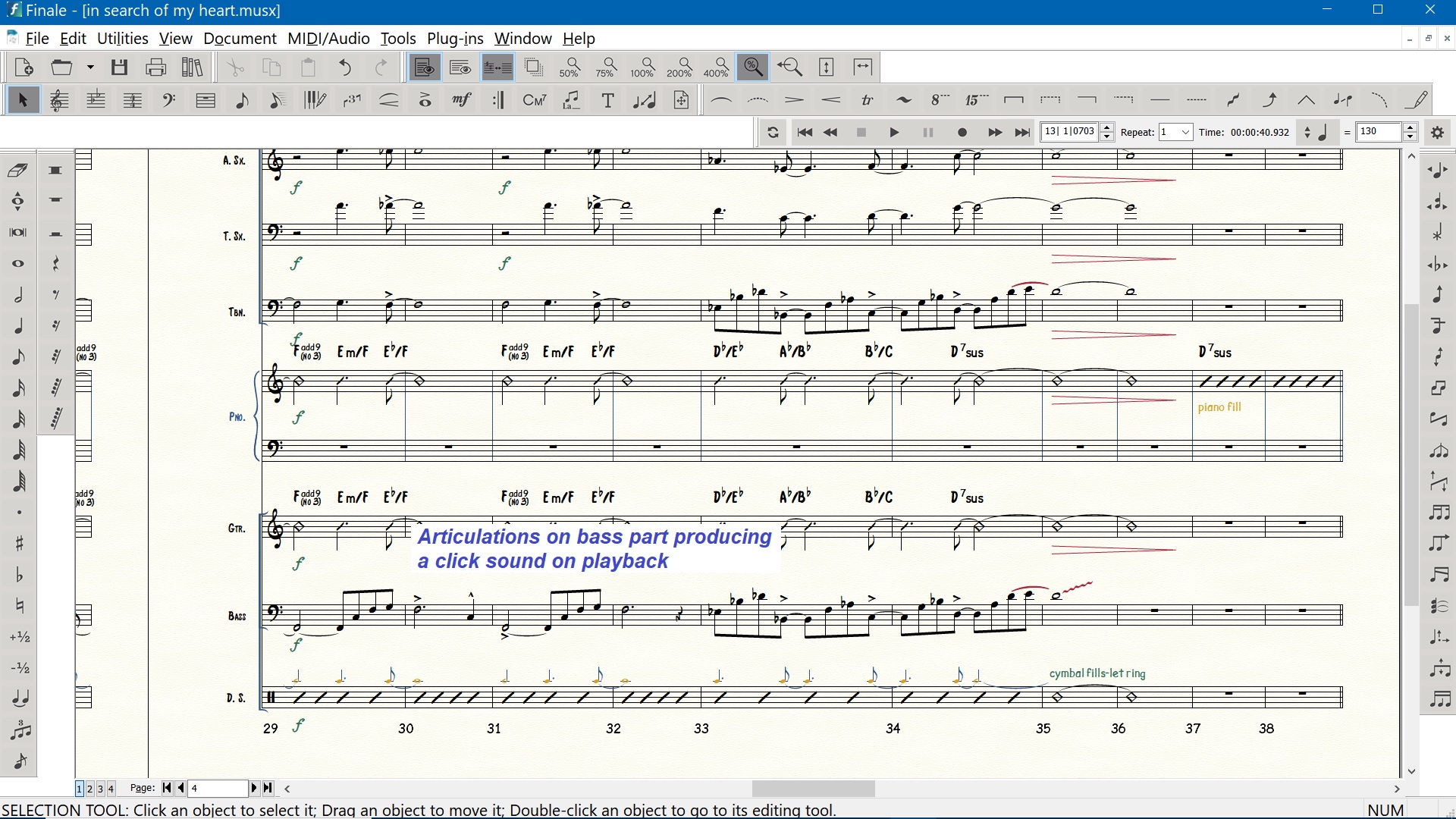 On the bass part in an arrangement I get a clicking noise when notes with articulations are played back. Remove the articulation and the noise goes away. This is not happening on the other parts. I've also had this happen in other files.