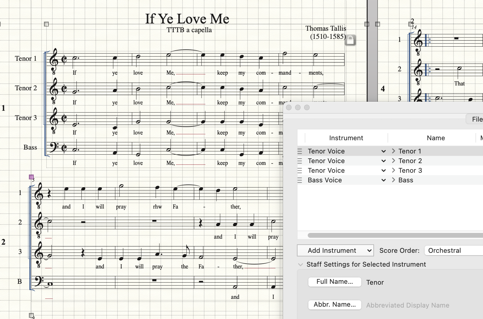 I have a choral piece that is 3 tenors and 1 bass with the staff name of Tenor 1, 2, 3, bass