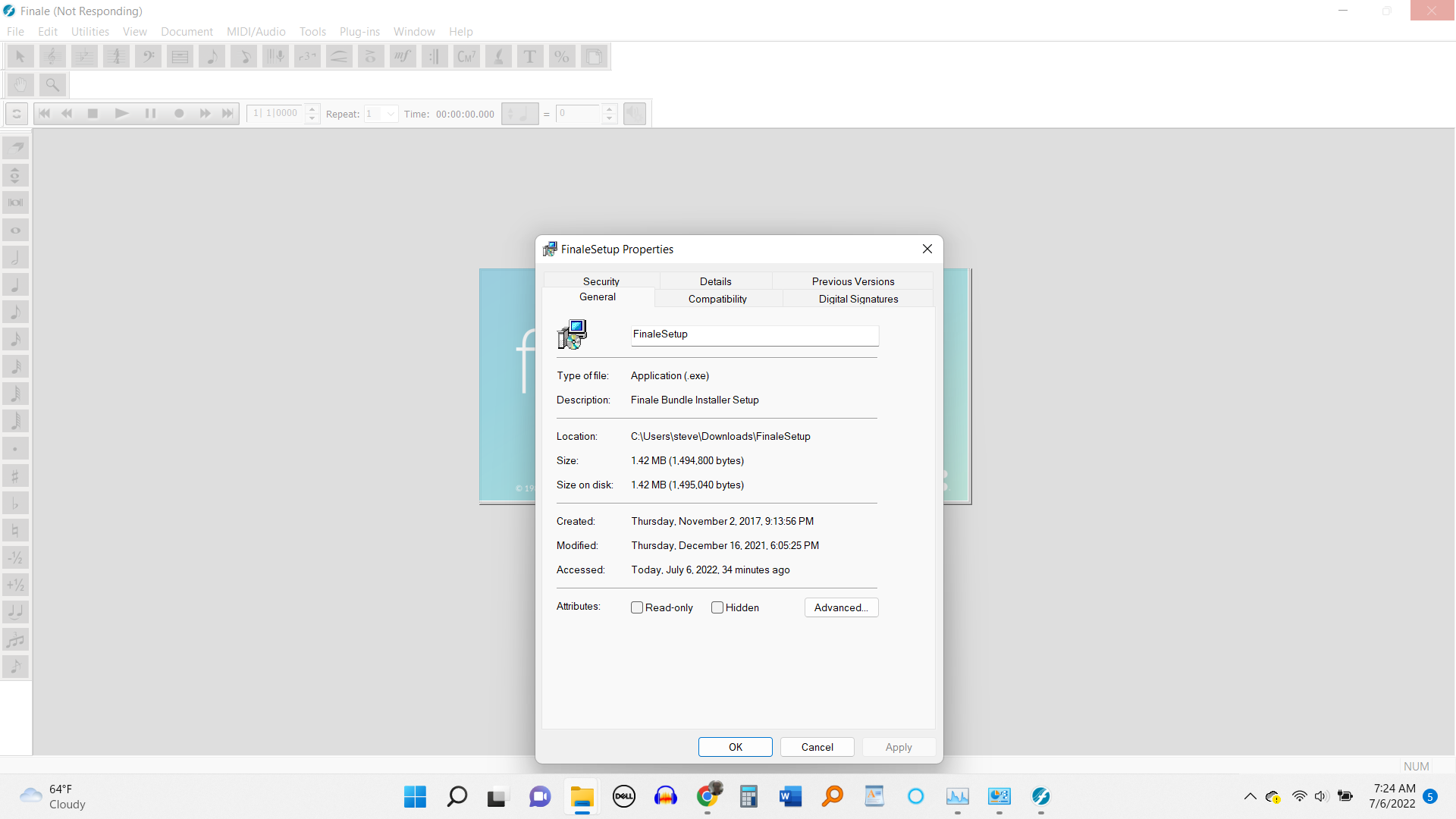 Have been running v25 (I think) on a newer laptop (this year) Dell; Windows 10 or maybe even 11; doing GREAT. Until today. Finale WILL NOT OPEN. Tried half a dozen ways; shut off and restarted computer; finally uninstalled and reinstalled Finale. NO LUCK. Any takers? THANKS!