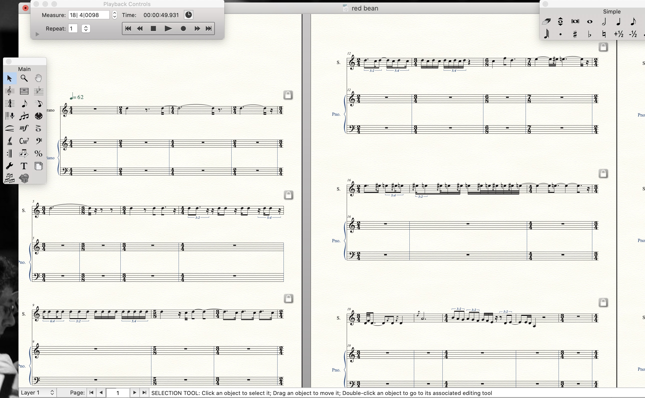 I have this finale file set to 62 a minute at the beginning, and I didn't set any speed change in between. But at about the 16th bars or so, the tempo suddenly slows down by almost double. Does anyone know what is the reason for this? What should I do to fix it?