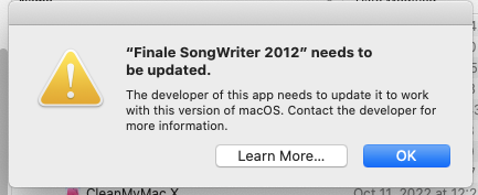 Songwriter is a 32bit app over 11 years old and was discontinued a few years before MacOS Catalina rendered all 32bit apps incompatible (four years ago next month).