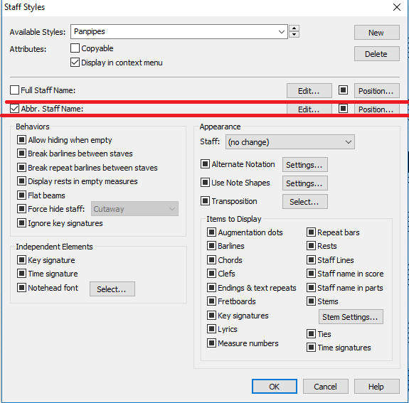 At the beginning of a song, I have hidden staves that have no music for several measures. My problem is after I can get the name to appear on the instrumental staves that now need to show the music and the name of the instrument playing that music, I can't get it not to show the names on every page thereafter. Once I can get the staves to show the names. I don't want it to show the names on every page after that.
