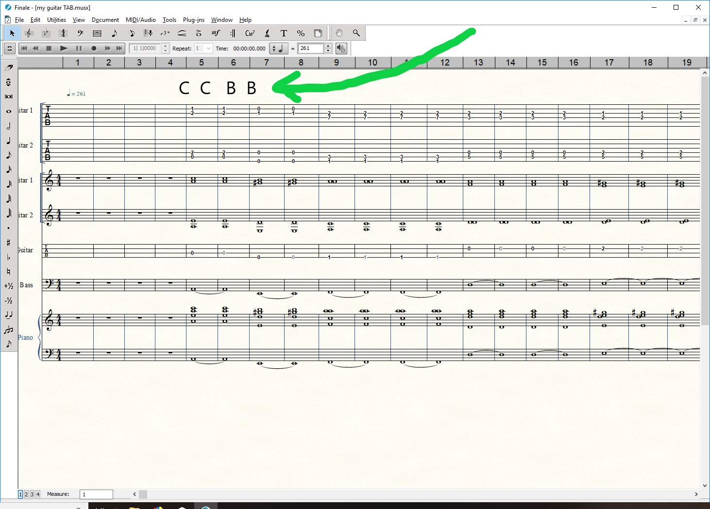 hi, I am looking for an instrument that can show note letters? The Tab is working well for me. However, I am also looking for a Finale staff instrument that will read as letters. Does it exist? Preferably, I'd like a staff that printed this, taken from the first bar below, first two staffs.